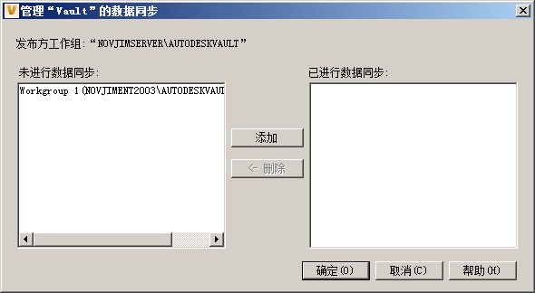 - 使用“>>”按钮将需要进行数据同步的工作组移至“已进行数据同步”列中。