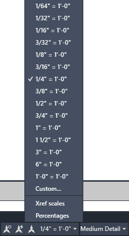 Specify the current annotation scale by selecting one from the Annotation Scale flyout menu.