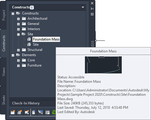 In the Project Navigator, you can display thumbnail previews of project drawings. The preview can be a graphic or a detail, or a combination of both. Displaying thumbnails can be helpful when you are navigating large projects with many drawings.
