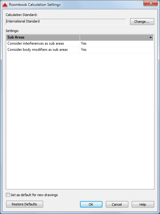 In this field is shown the current calculation standard. In order to change it, click Change.