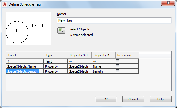 Use this procedure to create a schedule tag that captures and displays property set data for a particular object in your drawing.