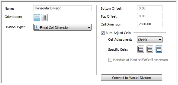 7. Select Fixed Cell Dimension for Division Type.