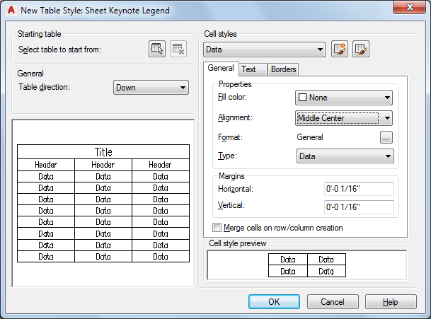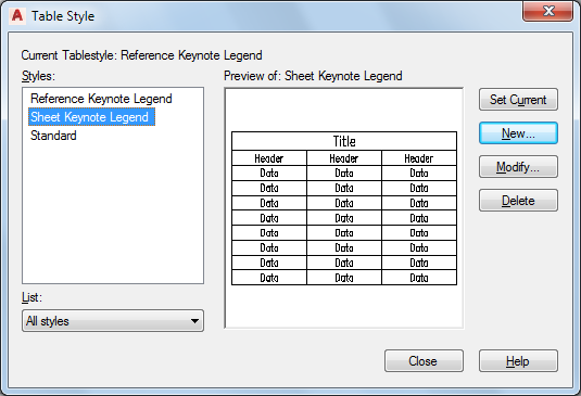 Keynote legends use AutoCAD table styles. Use this procedure to modify the available table styles.