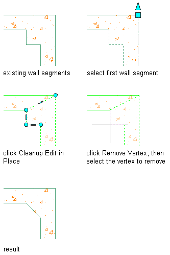 In the following example, a vertex is removed from a foundation wall corner to create a chamfered condition.