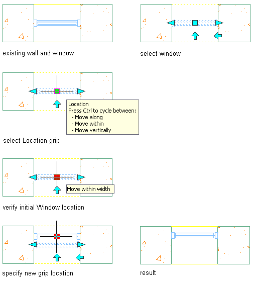 Use this procedure to move one or more windows within a wall by offsetting the windows from a reference location.