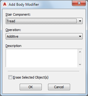 You can create a three-dimensional (3D) body modifier from a mass element, a mass group, or any other AEC object with mass. You can also create body modifiers from ACIS solids or blocks that form 3D bodies. You must place the object in the location you want in the drawing before defining the object as a body modifier.