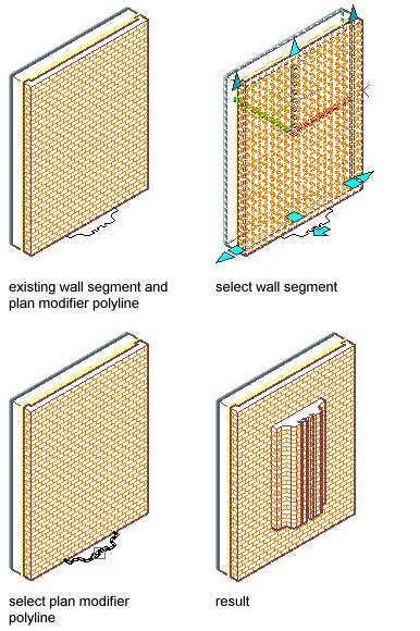 Use this procedure to create a wall modifier from an open polyline. You can draw the polyline in the location for the wall modifier, or you can project the modifier you create to the wall. The polyline cannot be closed.