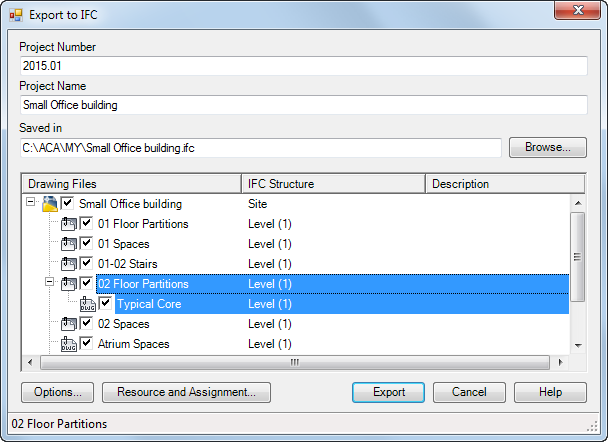 If the drawings were assigned to levels as part of the AutoCAD Architecture toolset project, a corresponding label is displayed by default under IFC Structure. Otherwise, they are mapped to Level 1 by default.