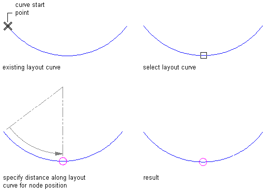 | Place nodes at locations that you specify | press Enter. Enter the number of nodes, and specify the locations of nodes by selecting them or by entering distances from the start point of the curve. |