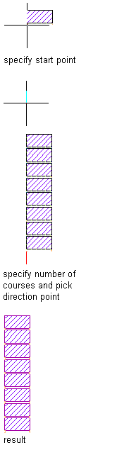 Use this procedure to insert detail components that need to be depicted multiple times in a linear array, such as bricks. In this example, the tool for inserting bricks has the View property set to Section. The same prompts are displayed if the View setting is Plan. If the setting is Elevation, the prompts described under To Insert Stamp Components are used. If the setting is Elevation (Pattern), the prompts described under To Insert Backfill Components are used.