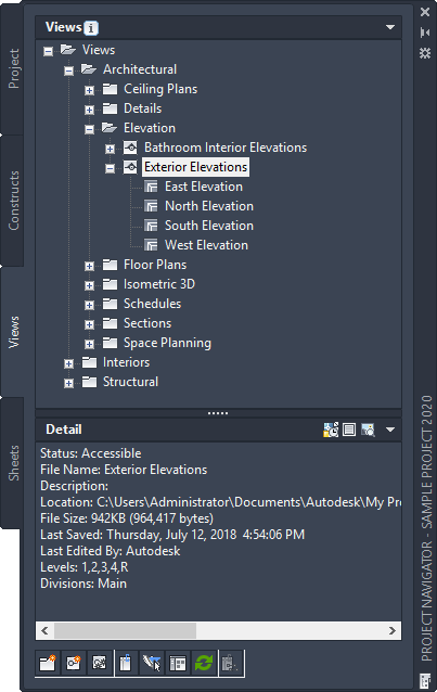 Model space views are displayed and opened in the Views tab of the Project Navigator.