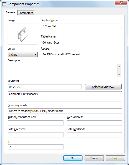 | Keynote | The default keynote key for this component. Click Select Keynote to browse for or create a different keynote. This is an optional field. |
