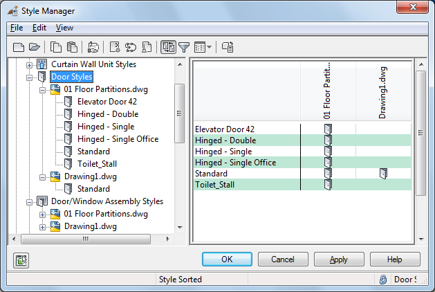 The Project Standards feature provides a mechanism for users to establish, maintain and synchronize styles across an AutoCAD Architecture toolset project. Within a project, you can define standard styles that are used across all project drawings.