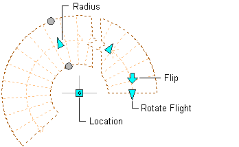 Spiral stair Radius, Flip, Rotate Flight, and Location grips