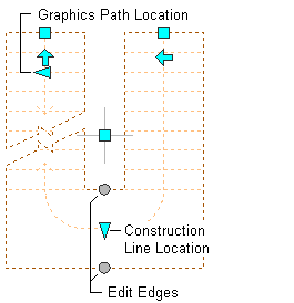 U-shaped stair Graphics Path Location, Construction Line Location, and Edit Edges grips