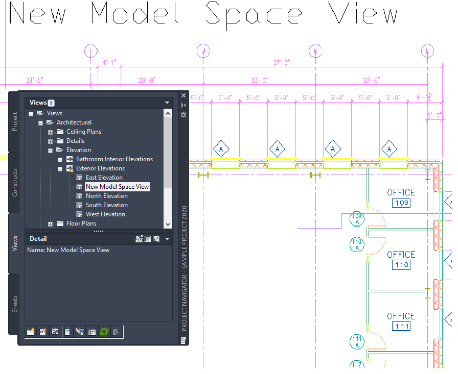 The default view template should be saved so that it will create a drawing that opens to the Model tab. When you create a new view drawing, all constructs that you assign to it will be referenced into the view drawing. If the template does not open with model space active, the building will be referenced into paper space.