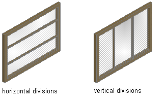 Each grid in a door/window assembly has one division assignment that determines whether the grid is divided horizontally or vertically. The division also determines the number of cells, their size, and their placement.