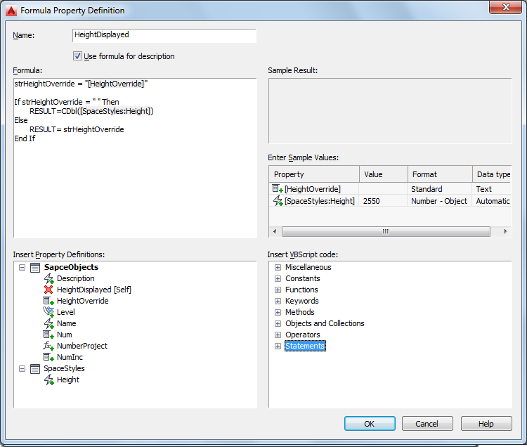 Edited the HeightDisplayed formula property definition on the Formula Property Definition worksheet