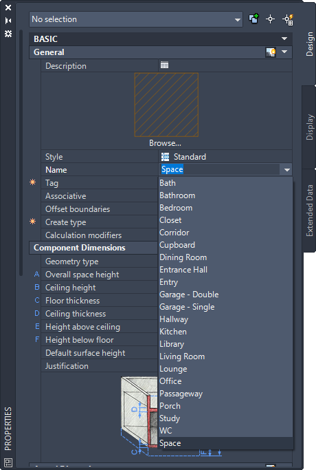 A list definition is a list of names that may be used as allowed names for spaces or zones. List definitions can be attached to a space style or a zone style, so that the list of names is available on the Properties palette when you create or edit a space or zone with that style.