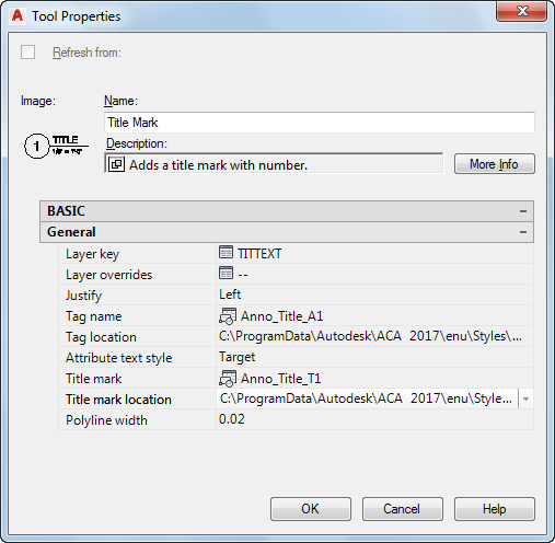 | Layer Overrides | General | If necessary, you can specify a layer key override for the title mark here. |