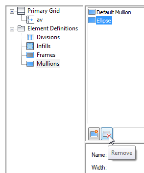 Use this procedure to remove a mullion definition that you no longer need. You cannot remove a mullion definition if it is assigned to a mullion, but you can remove it if it is assigned as an override to a mullion. Also, you cannot remove the Default Mullion definition, but you can modify it as needed.
