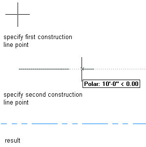 The construction line is displayed. If you select it, three grips are displayed. You can move the line by moving the middle grip, or you can change its orientation by moving either of the end grips.