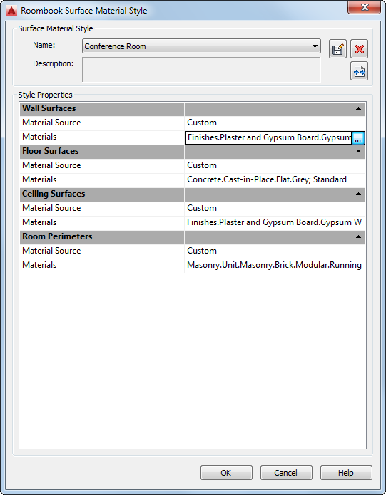 - In the Roombook Surface Material Style dialog box, click the browse button.