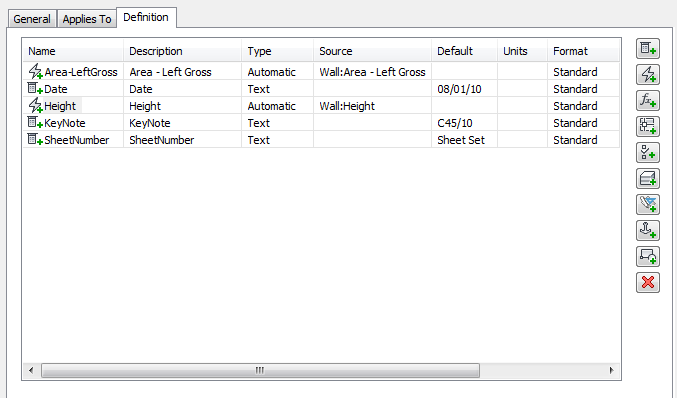 Wall properties with keynote, date, and sheet number fields