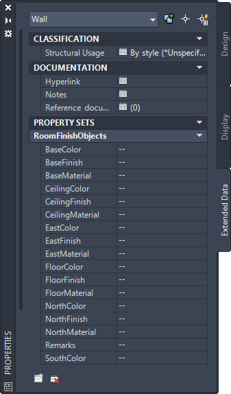 Note: The listing of the properties set definition in the Extended Data tab can be controlled using the Properties Override drop-down options in AEC Object setting tab in the Options dialog box.