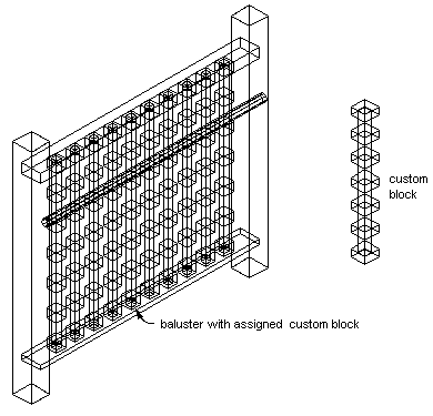 Create the block in the same plane as the railing to which you will attach it. Be sure that the objects used to create the custom blocks are created with their properties designated as ByBlock. Otherwise, they cannot be controlled through the display properties.