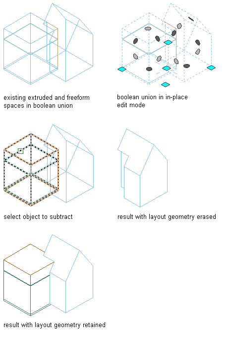 Use this procedure to subtract a space or other AEC object from a 3D freeform space. You can subtract any AEC object that has a 3D geometry from a space.
