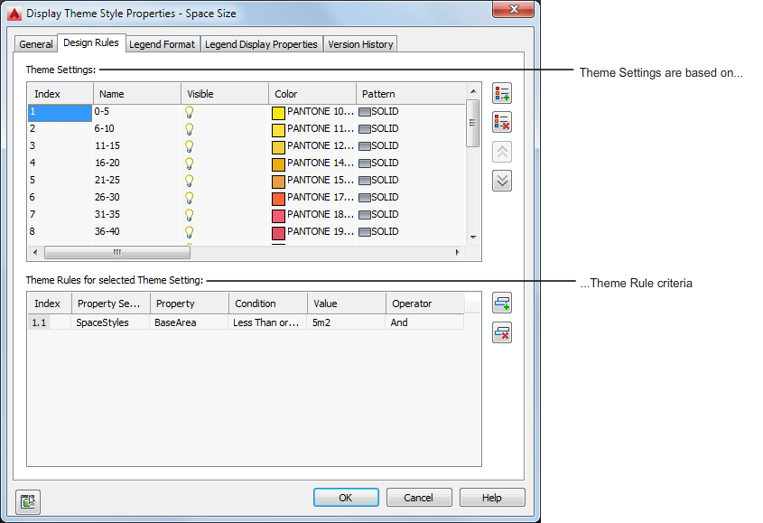 The criteria for the display theme are based on the property data attached to the objects or object styles. The property data overrides the display properties to produce the visual effects produced by inserting a display theme.