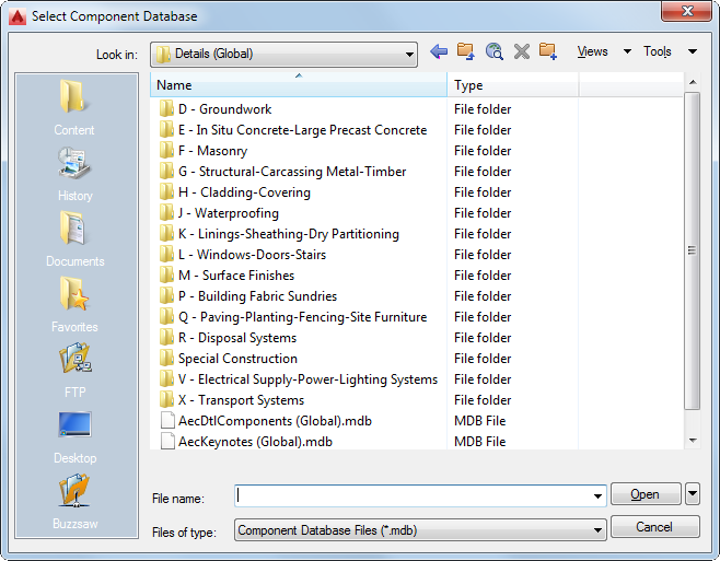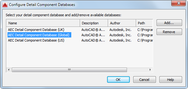 - On the AEC Content page, click the Add/Remove button for Detail Component Databases.