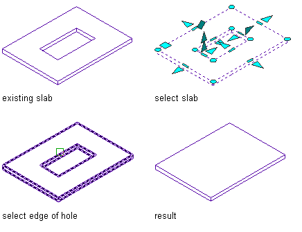 Use this procedure to remove a hole from a slab or roof slab.