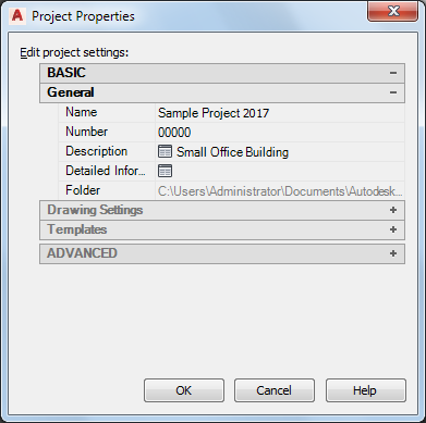 Use this procedure to define or change basic properties for a project. Basic properties are divided into 3 categories:
