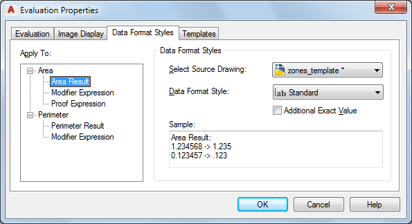 - For Area Result and Perimeter Result, if you want to include the exact, unrounded values as additional information in the evaluation file, select Additional Exact value.