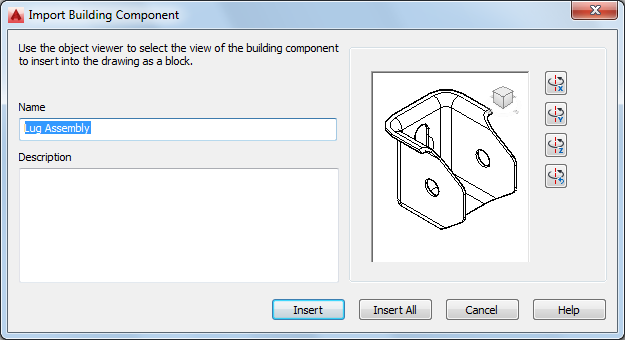 This opens the Import dialog box where you can specify a name, description, and change the orientation of the block or multi-view block during insertion.