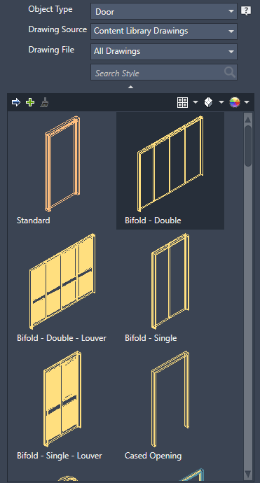 You can search for a object style by name, select an object and view the styles available for it, search for styles in the currently open drawings, project standard drawings and the content library, and in other drawings files.
