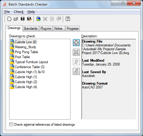 Before you start the AutoCAD Batch Standards Checker, you should update the project CHX file to make sure the CHX contains the current list of AutoCAD standard files and project files.