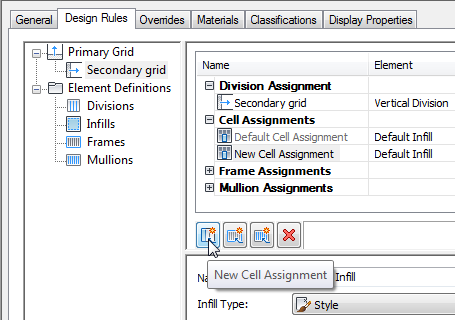 - In the left pane, select the grid in which you want to put a simple panel infill.