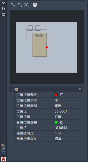 指定目標位置指示標的 Z 座標。您可以在繪製區中指定一點或輸入一個新值,以修改此設定。