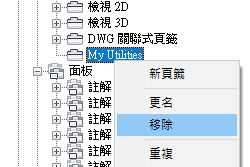 無法從功能區頁籤退回功能區面板的移除。如果移除錯誤的功能區面板,請按一下「取消」以關閉自訂使用者介面 (CUI) 編輯器,且不儲存所做的變更。執行此作業將退回任何其他您可能已進行的變更。