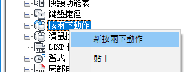 中的自訂」窗格中,在「按兩下動作」節點按一下右鍵。按一下「新按兩下動作」。