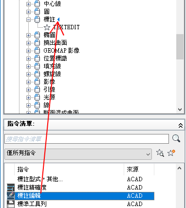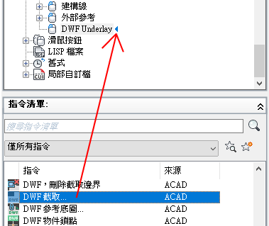 在「指令清單」窗格中,將要加入的指令拖曳至「<