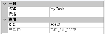 - 在「性質」窗格中的「顯示」區段內,對「名稱」性質 (不是「指令名稱」或「指令顯示名稱」性質) 進行所需的變更。