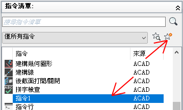 篩選清單以便只展示已加入至載入之自訂檔的使用者定義指令。