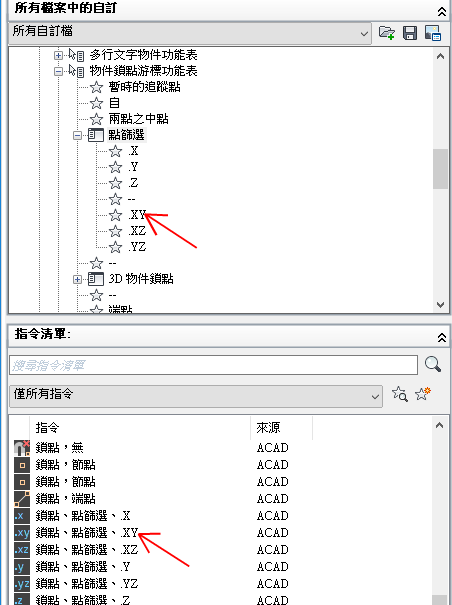 注意: 移除指令後無法退回。如果意外地移除錯誤的指令,請按一下「取消」以結束 CUI 編輯器。按一下「取消」將不會儲存所有 CUI 編輯器中的變更,因為它已開啟或已套用最後一次變更。