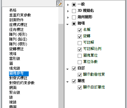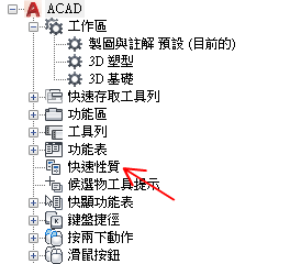 如果已勾選某個物件類型,在選取相同類型的物件時,以及 QPMODE 設定為 2 且 PICKFIRST 開啟時,則會在「快速性質」選項板上顯示該物件類型的性質。清除物件類型旁邊的勾選標記可以從「快速性質」選項板移除所選取的物件類型。