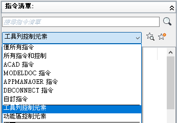 - 在「指令清單」窗格的「品類」清單中,選取「功能區控制元素」。