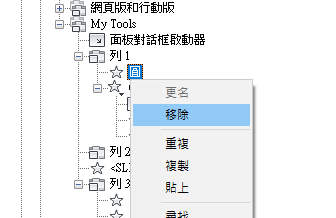 - 在要移除的列或子面板上按一下右鍵。按一下「刪除」。